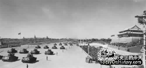 1952年10月1日,中国人民解放军机械化部队经过天安门广场