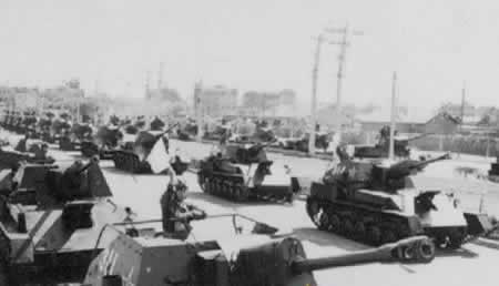 1951年10月1日,中国人民解放军坦克部队在长安街等候受阅