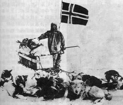 阿蒙森和随行的狗在南极上享受来之不易的休息